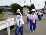 3時間目は、楽しみにしていた生活科の探検です。今日は、学校の近くの公園にみんなで歩いて出かけました。公園では、すべり台やブランコで遊んだり、土手の草花とふれ合ったりする体験ができました。部屋地区だからこそできる貴重な経験になりました。