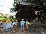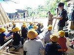郵便局や工場などバスの窓から見学したところもありましたが、自分の家の近くとは違う場所や土地のようすがあることに気づいて興味をもちました。神社にどうして土俵があるのか、火の見やぐらだって初めて見る子がいました。