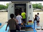 昇降口にところせましと並べられた本を見て、みんな目をキラキラさせています。あじさい号の外や中にも本がいっぱいあるので、どれにしようか迷っている子どももいました。部屋小の子どもたちは、本当に読書が大好きだとわかりました。