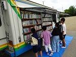 今日は、月に1回移動図書館あじさい号がやってくる日です。子どもたちは、お昼休みになると次から次に本を借りにやってきました。