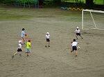 バドミントンクラブは、体育館でペア同士の試合をしました。毎回ちがう人とペアを組んでなかよしを増やそうというめあてをもって活動しています。スポーツクラブは、校庭でサッカーをしました。みんなで一つのボールを追いかけました。