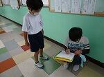 1年生は、生活科で育てているアサガオを観察した記録を貼っていました。2年生は、音楽で手拍子や足うちでリズム遊びをしています。3年生は、初めての習字!!まずは、セットを並べるところからスタートです。