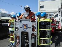 消防署の仕事についてのビデオを見せていただき、消防隊の方々は火事を消すことだけでなく、救急・救助のために日々、訓練をされていることを知りました。見学の間も司令室から救急車の要請が入り、次々と出動していました。
