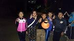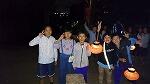次の写真は、ナイトハイキングであじさい坂をこれから登ろうとするところの写真です。班ごとに、田中提灯屋さんの提灯をさげて登ります。全員元気です。