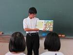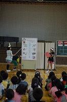 最初は、詩の朗読です。その後、お面を付けた1年生が「おおきなかぶ」の寸劇をしてくれました。何度も何度もくり返される「うんとこしょ どっこいしょ」の掛け声に、会場で見ていた上級生は大笑い。昨年勉強した2年生は、自然と体を動かしながら、一緒に「うんとこしょ どっこいしょ」って言っていました。
