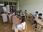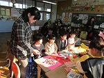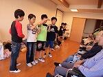 1年生はお手玉やコマ回し、あやとり、竹とんぼ、カルタ取り、おはじき、竹鉄砲などの昔の遊びを教えていただきました。子どもたちはお手玉3つを上手に操るおばあちゃんの技にびっくりしました。また、ベーゴマについては、床(トコ)と呼ばれる土俵の中にベーゴマを入れて飛び出したら負けになることなども実際にやっていただき、1年生は見て聞いて覚えることができました。