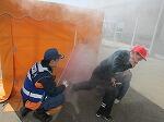 2月5日(金)に避難訓練を行い、3分以内に全員避難することができました。その後、防災教室で煙からの避難を体験しました。