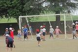 朝活の時間を利用して、「どろけい」をしました。下の写真を見てください!なかよし班の誰もが笑顔で活動しています。よく見ると、味方がタッチして助けようとしています。若い担任の先生も全力で追いかけています。