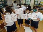 1年生の英語活動 投稿日時 : 2021/03/16 部屋小管理者 カテゴリ:1年生 1年生が、ALTのティム先生と英語活動をしました。いろいろな食べ物の名前を英語で話す練習からスタートです。 ティム先生がカードを見せながら発音して、それを聞いて繰り返します。1年生でも発音が上手にできました。 その後、「わたしが好きなのは・・・です。」という意味の「I like~」を練習して、友達に紹介する活動をしました。 次に、自分の好きな食べ物を選んで、絵を描きました。最後は、自分の好きなメニューを見せながら、友達に紹介することができました。 {{options.likeCount}} {{options.likeCount}}
