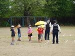 安全な道路の歩き方や渡り方、横断歩道での待つ位置など、校庭に書いた模擬道路で実際に行動し、確認できました。やや蒸し暑い中でしたが、1年生は警察署の方の話をよく聞いて、質問に答えることができました。ご指導、ありがとうございました。
