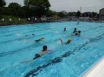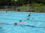 3・4年生は、クロールの手の動きを練習しています。けのびの姿勢からバタ足と手の動きを加え、よく体を伸ばしたフォームで泳げています。5年生は、水慣れで体の力を抜くことを練習しました。仰向けになって力を抜いても沈まないことがよくわかったようです。6年生は、平泳ぎの脚の動きを練習しました。足のつま先の向きを意識して練習に取り組めました。