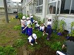 それでも子どもたちは一生懸命アブラムシを見つけ出し、猿橋先生が作ってくださった液をスプレーで吹きかけました。これからもみんなの花を守るためにパトロールお願いします!!
