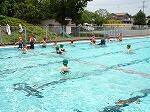 水温は27℃とやや高めで、プールに入るにはちょうどよいコンディションです。準備運動やシャワーの浴び方も教わりました。いろいろな水慣れの運動をすることができたので、満足そうにしていました。