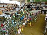 明日は年に一度の七夕の日です。図書室では「七夕まつり週間」として、笹の葉が用意され、本を借りに来た子どもたちが、願い事を書けるようにしています。