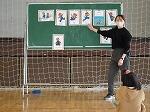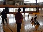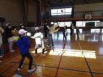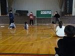 まず、担任の先生がジェスチャーをし、何をしているところが当てるゲームがありました。「踊る」「走る」「歩く」「飛ぶ」「ジャンプ」など、たくさんのジェスチャーがありました。ALTの先生がカードを示し、動作を英語で発音してくださいました。子どもたちもまねをしながら、英語の表現に慣れ親しみました。動作をしながら声に出して、楽しく活動しました。先生役となって子どもたちも英語で命令することもできました。広い体育館で楽しく学習できました。