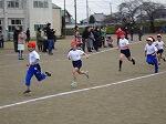 本番のコースで走りはじめると、追い風の時はいつもよりスピードが出せてましたが、向かい風になると、なかなか前に進みません。帽子が飛ばされないように押さえながら走る子もいました。