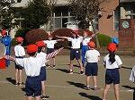 最後は、応援の練習です。応援団はこれまで昼休み等に進んで練習してきました。応援団の気合いの入った声と身振りに、1・2年生はまねをしていました。初めての全体練習でしたが、全校生で一生懸命声を出し、がんばりました。