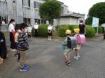 1年生と5年生、2年生と6年生、3年生と4年生のペア学年で行いました。高学年の児童がソフトボール投げの手本を見せたり、ボールを取ったりして、補助してくれました。低学年の児童からは「うわあ。すごーい。」「がんばれー。」などの応援の声があがりました。