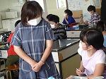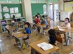 清掃の時間には、いよいよ新しい役割での清掃です。担当の先生の話を聞いて、協力して取り組むことができました。終了後は、担当場所ごとに高学年の子どもが中心になって反省をし、きちんと挨拶することもできました。
