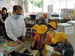 「部屋郵便局」と「デイリーストア」を選んだ班の子どもたちは、郵便はがきにスタンプを押したり、お金を数える機械を見せてもらったりしました。焼きたてのパンを売る工夫について教えてもらいました。たくさんの商品を並べている様子も見ることができました。