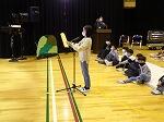 2時間目は、3・4年生が「デカバトンレース」の練習をしました。2mもある大きなバトンを二人一組で運び、リレーします。ルールや作戦について話し合うともできました。