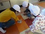その後、清掃班のみんなで協力して、ぞうきんでワックスを塗りました。ワックスを塗ったところは歩けないので、教室の出口に向かって一生懸命に塗りました。