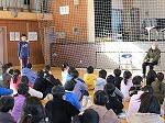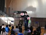 後半は、校庭に出て石川さんの実際の投球を見せていただきました。ボールの速さにみんな驚いていました。その後、子どもたちがキャッチボールクラシックというゲームをした時もやさしくアドバイスしてくださいました。