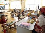 初めての給食では、量が多くてびっくりしていましたが、先生の方が驚くくらいみんなおいしそうに残さず食べられました。