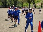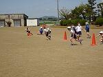 最後は、3人のグループで折り返しリレーで練習をしました。繰り返すたびにタイムが縮んでいくので、子どもたちも意欲を高めていました。