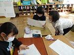 3年生が、国語の時間に「物語の作者になろう」という学習をしました。主人公の名前や住んでいる国の名前は、グループでカードを引いて出てきた言葉を使って考えました。