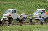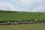 PS:部屋小のお借りしている水田は有り難いことに、西門から200m歩いて行くと、あっという間についてしまう距離にあります。あぜ道を歩いていくので、車とのすれ違いも全くありません。また、バックの緑を見てください。これは巴波川の堤防(土手)の緑です。こんなにロケーションが良い所で体験学習ができるのは部屋小だけかも知れませんね。