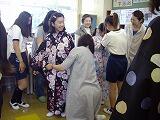 6年生女子は、図書室で着付け体験をしました。ボランティアの皆様から着付けを教わりました。次回では、この浴衣姿でお囃子を演奏する予定です。