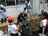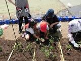学習支援ボランティアの皆様にご協力いただき、上手に植えることができました。今後は水やりに気を付けて、野菜を育てていきます。