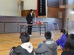 茂呂先生には、学習や生活において、子どもの目線に立った励ましやお手伝いをしていただきました。校長先生が、「みんなの中には、やさしくしてもらった人もいると思います。」と話すと、たくさんの子どもたちがうなずいていました。