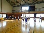 5・6年生は、体育でバスケットボールの練習に取り組んでいます。ボールに慣れるための練習からスタートして、今はパスを出したり、もらうために動いたりする動き方に挑戦しています。