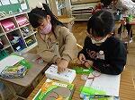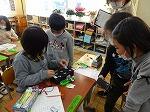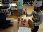 工夫して作ったけん玉やコマ、やじろべえなどで遊んだり、まと入れやおみくじを楽しんだりできました。自分たちのコーナーでの遊び方がきちんと考えてあり、説明を書いた紙を読めばわかるようになっていました。説明する力も発揮されていました。