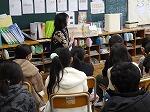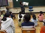 今日の朝の活動は、ボランティアの「スマイル」さんによる読み聞かせです。
