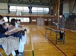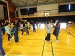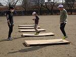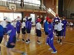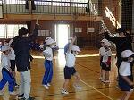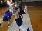 次に、バトンを使ったパスの練習です。どのようにもらったらよいか、どのように渡したらよいか考えながら練習に取り組みました。