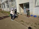 もちろん、普段と同じ掃除もしっかりやりました。水が冷たくても水道や床ふきもしっかりやっています。校庭の落ち葉拾いもがんばりました。