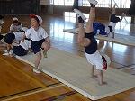 寒い体育館の中でも、児童は次々と跳び箱に挑戦し、元気いっぱいです。