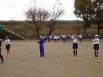 まず、体育委員の子どもたちの号令で、みんな一緒に準備運動をしました。