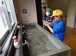 水道や更衣室、トイレは、例年なら上学年の子どもたちの力を借りて行っていましたが、感染症予防のため、今年は先生たちがきれいにしました。