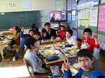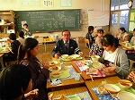 代表児童の感謝の言葉や、感謝の手紙と校歌のプレゼントをしました。また、5・6年生の教室でお話をしながら給食も召し上がっていただきました。