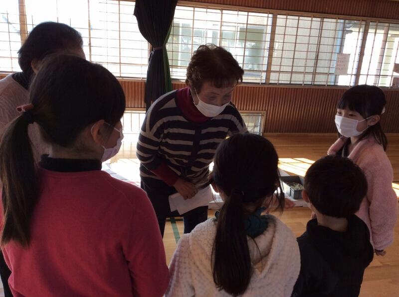 1月21日(火)に、1・2年生合同で、昔の遊びを体験しました。教えてくれる先生は、部屋地区にお住まいの方、6名の方にボランティアとしてご協力いただきました。