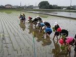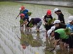 部屋小学校の北にある田んぼに児童19人で田植えを行いました。 児童は「横一列になってまっすぐ丁寧に植えてください。」と指導していただきました。30分ほどで田植えは終わりました。 児童からは「田んぼの中に入るのも田植えをするのも初めてで、大変だった。」「苗をまっすぐ植えることはできなかったけど楽しかった。」などの感想がありました。