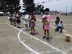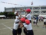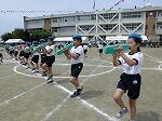 小中一貫教育の一つ、小中交流活動です。綱を引くと同時に玉入れを行いました。