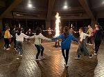 その後、みんなが囲む中心のたきぎに点火して、火を囲みながらレクリエーションやフォークダンスなどを楽しみました。