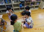 子どもたちは、図書室で読書したり、友達とカードゲームをしたり、タブレットを操作したりして楽しく時間を過ごしていました。