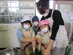 3月14日(火)に、1/2年生がボランティアの方々の指導を受けながら、草もちづくりに挑戦しました。先週、摘んでおいたヨモギを餅の生地にねりこんでいきます。ボランティアの方々と1・2年生児童がコミュニケーションを取りながらお餅を作っていきました。旬の食材(ヨモギ)を使ったことで、食育にもつなげることができます。春休みに、親子で「草餅」を作ってみてはいかがですか?