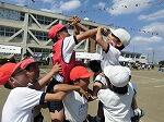 「運動会の歌」を精一杯大きな声で歌いました。紅組・白組ともに気合いがみなぎっていました。両団長が皆をまとめ、とも素晴らしい応援合戦でした。